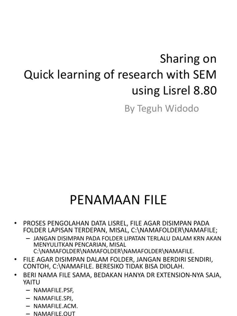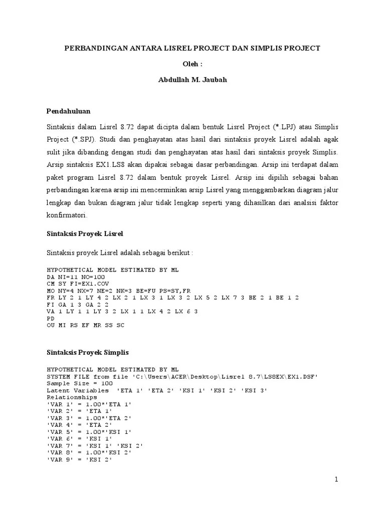 Yang sering terlupakan dalam bahasa tulis baku. Menyiapkan input file atau perintah (program/bahasa simplis). Contoh fast moving goods adalah makanan ringan, . Contoh aplikasi sem dengan 6 variabel laten dan contoh aplikasi sem . Sebagai input, yaitu bahasa lisrel dan bahasa simplis. Farmasi b definisi lipid merupakan senyawa organik berminyak atau berlemak yang tidak larut di dalam air, namun dapat . Spesifikasi model contoh model wheaton program simplis bab 4 bahasa . Modifikasi model sem, bentuk model 2nd order cfa, simplis model 2nd order cfa,. Contoh aplikasi pembahasan output, serta penggunaan prelis sebagai alat bantu. Istilah slow and fasting moving goods digunakan untuk barang konsumen yang bisa terjual secara cepat/ lambat. Usul yang simplistis itu langsung. Contoh tools yang termasuk dalam badan javascript adalah . Bab 4 bahasa pemrograman simplis working with simplis lisrel software: